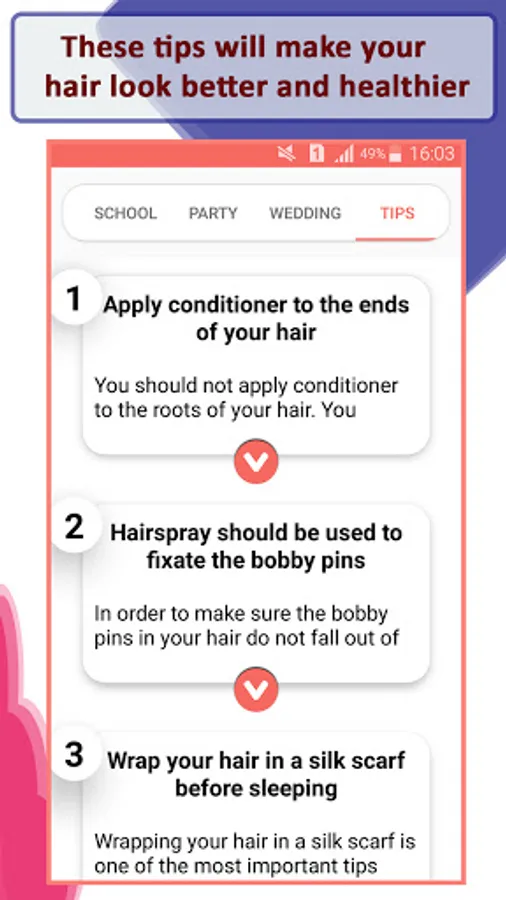 - Hair styling tips: e.g apply conditioner or the end of your hair and many more like this…