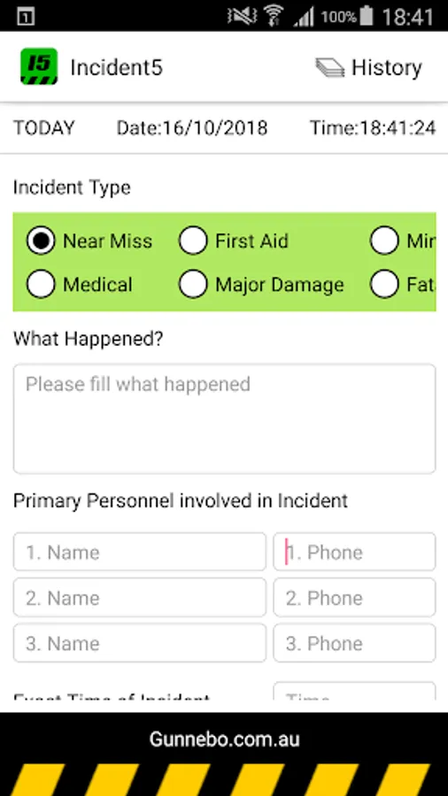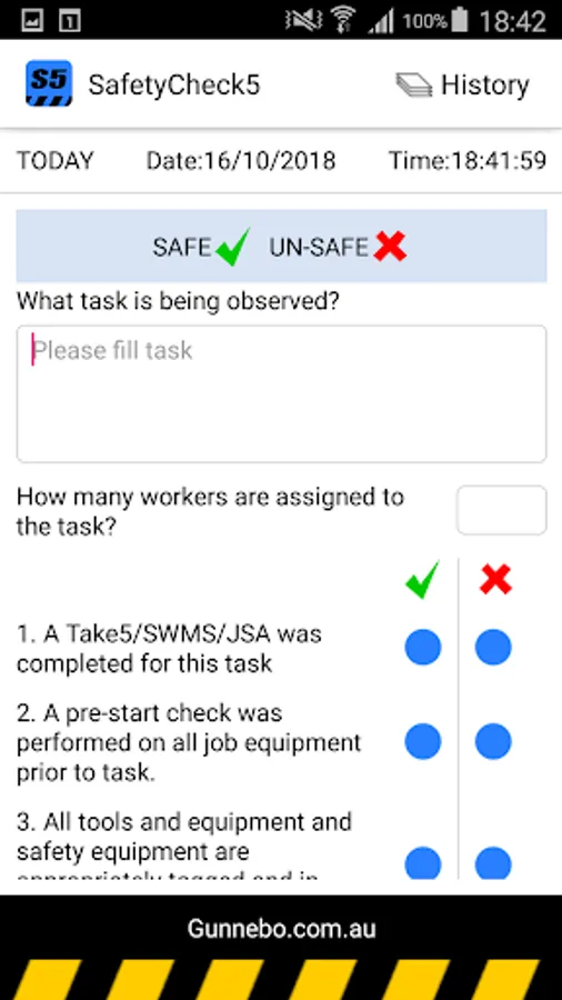 Gunnebo Take5, is a suite of 5 safety reporting apps that allow employees to complete in near real time safety reporting, whilst in the work place.With date and time stamped reports and GPS location as standard and the ability to take photos to improve the reporting process. With a Take5, Hazard5,Prestart5,safety Observation5 and an Incident5, Gunnebo can improve its OH&S requirements and user participation across the companys work force.