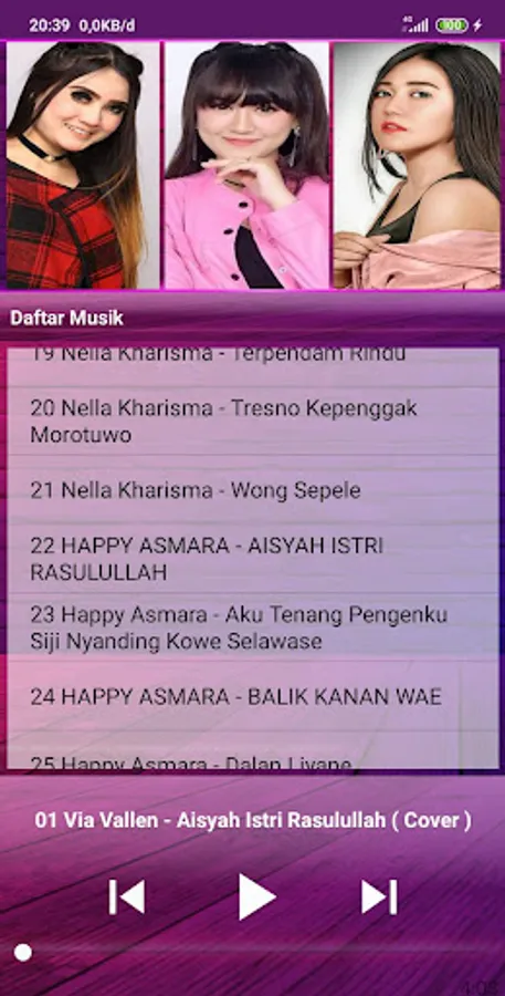 You can hear the song Dangdut Koplo sung by a rising singer like Via Vallen, Nella Karisma and and here you can listen to the song Via Vallen, Song Nella Charisma, and Hapy Asmara