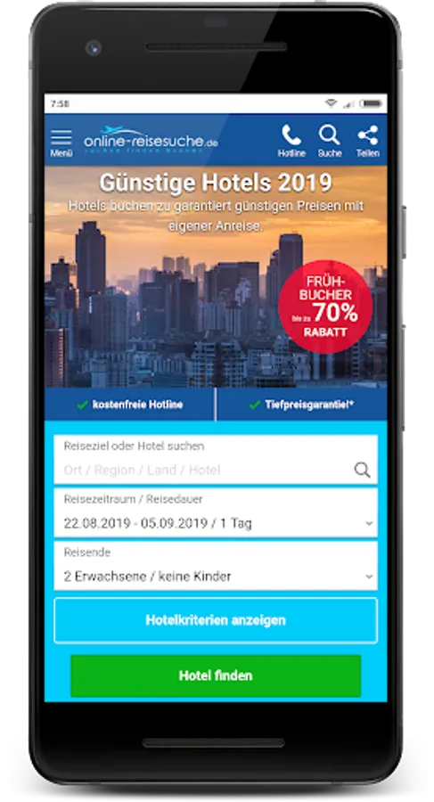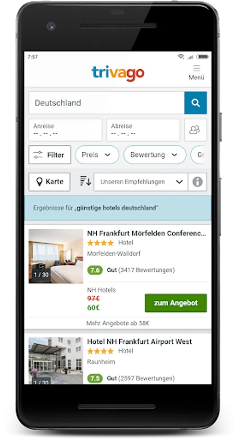 Find hotels in Germany at discount prices, with comfortable surroundings and the best offers for you and your family. Luxury and five-star hotels with one, two or three bedrooms are available at reasonable prices. So do not waste time and download our app to find the best hotels and rooms to rent.