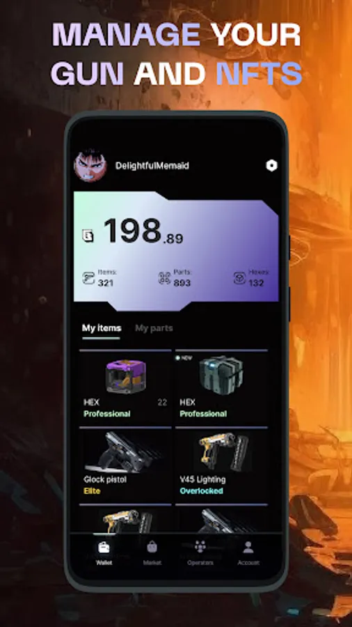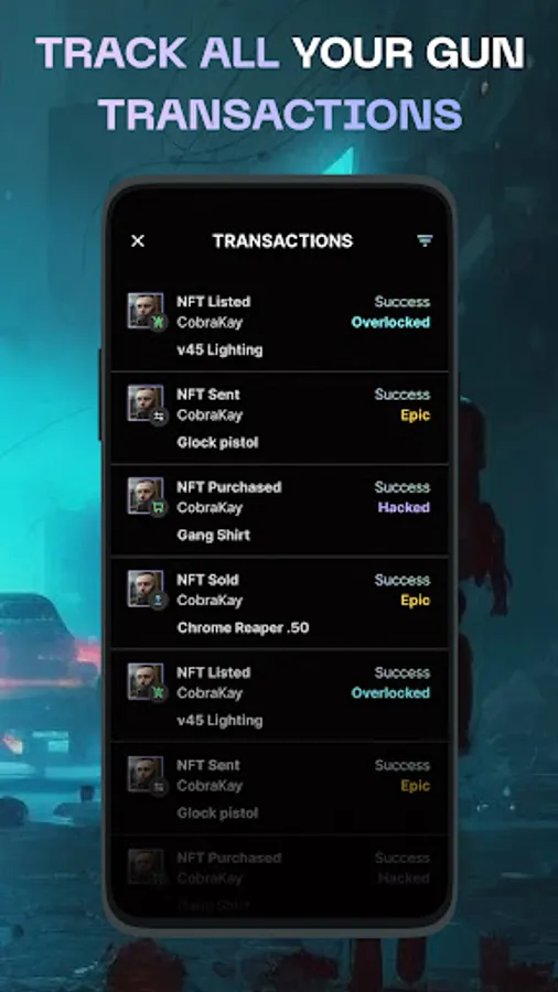 Show off your rarest and most valuable NFTs or expand your collection by trading with other players, all within the in-app GUNZ Marketplace!