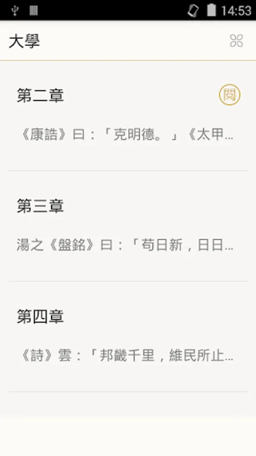 大學原為禮記第四十二篇,約為秦漢之際儒家作品。一說曾子作。提出明明德、親民、止於至善的三綱領和格物、致知、誠意、正心、修身、齊家、治國、平天下的八條目。宋代程顥、程頤兄弟從禮記中把它抽出,以與論語、孟子、中庸相配合。至南宋淳熙年間(1174-—1189),朱熹撰四書集注,將它和中庸、論語、孟子合為“四書”。