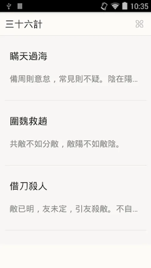 《三十六计》或称“三十六策”,是指中国古代三十六个兵法策略,语源于南北朝,成书于明清。它是根据我国古代卓越的军事思想和丰富的斗争经验总结而成的兵书,是中华民族悠久文化遗产之一。