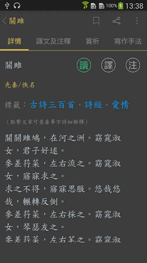 『诗经』的作者佚名,绝大部分已经无法考证,传为尹吉甫采集、孔子编订。『诗经』在先秦时期称为『诗』,或取其整数称『诗三百』。西汉时被尊为儒家经典,始称『诗经』,并沿用至今。诗经在内容上分为『风』、『雅』、『颂』三个部分。『风』是周代各地的歌谣;『雅』是周人的正声雅乐,又分『小雅』和『大雅』;『颂』是周王庭和贵族宗庙祭祀的乐歌,又分为『周颂』、『鲁颂』和『商颂』。