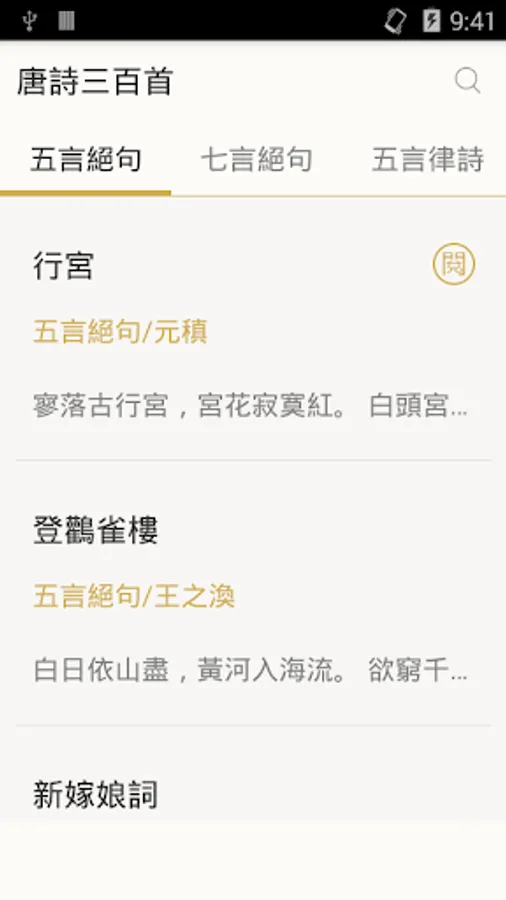 1 classification details, this APP contains the following categories: Seven Poems, Seven quatrains, Seven Poems, Wu Yan poetry, Wu Yan quatrains, Five-character verses, Yue;