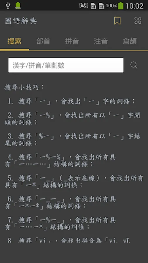 2. Searching for "一%" will find all entries beginning with the word "一";