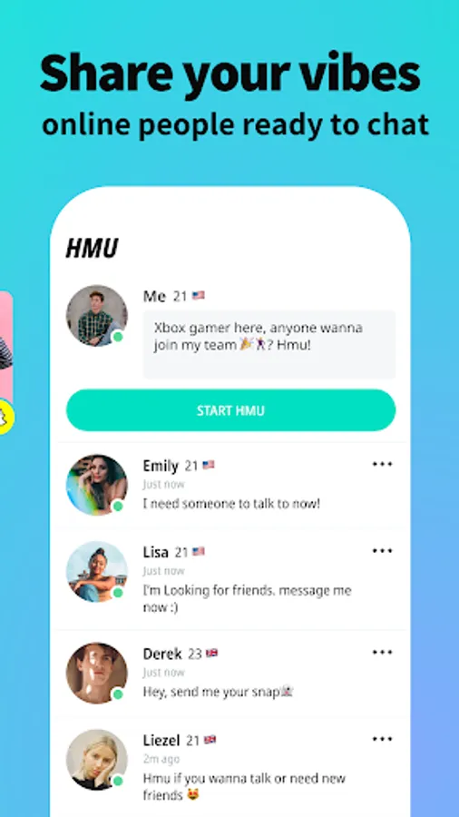 Feeling spontaneous and eager to meet new people right away? Post your interests, hobbies, or plans on HMU (Hit Me Up) and see the messages pouring in from teens who can't wait to join in on the fun!