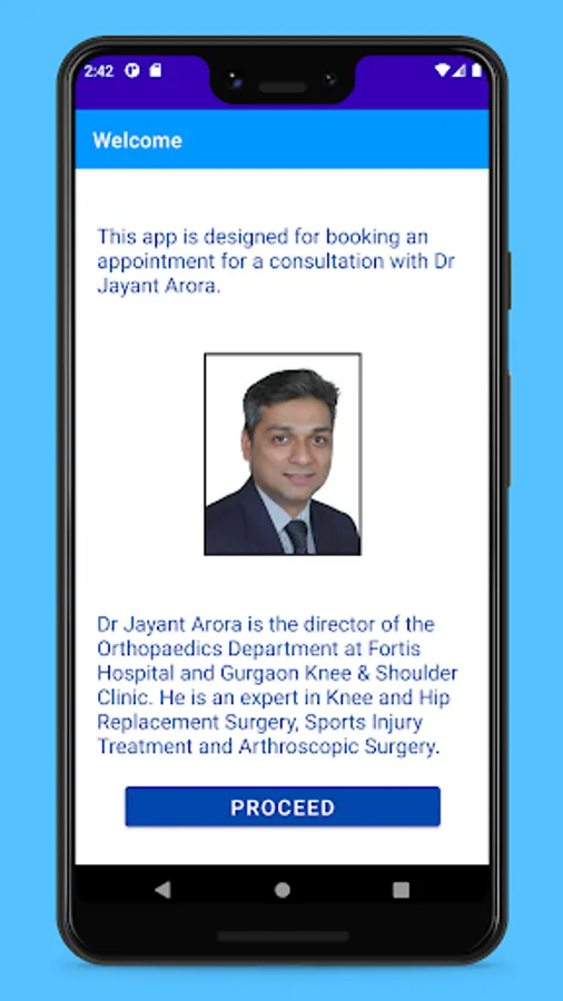 This app allows scheduling an appointment with Dr Jayant Arora at our clinic for an on-site consultation, for initial assessment as well as a second opinion.