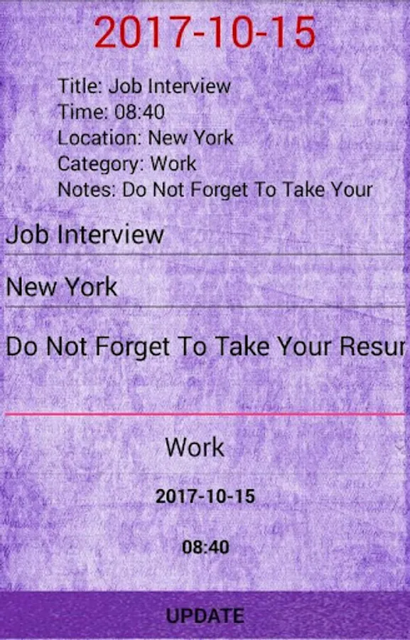 Add your plans, notes or works to do. You can check your list, update, or delete any time. Planner is a very elegant and simple way to organize your daily work!