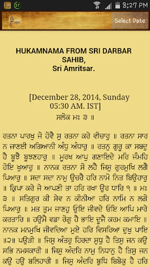 * Daily Hukamnama Sri Darbar Sahib