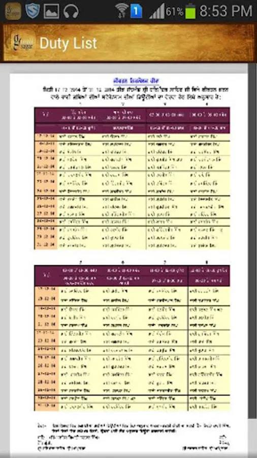 * Darbar Sahib Raagi Duty List