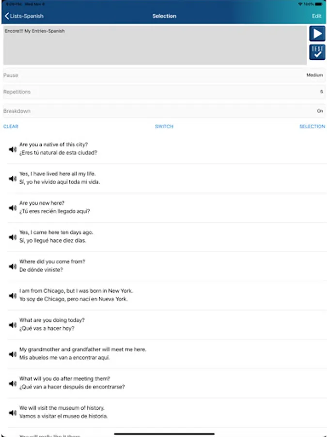 Unlike any other language learning app, Encore!!! gives the freedom to decide what to hear, how many times and how much pause is needed between entries.