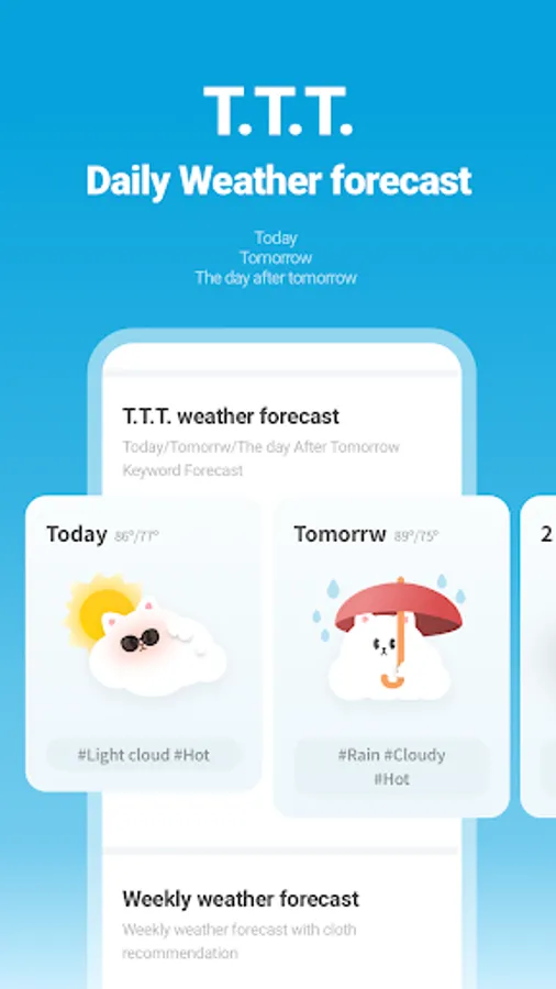 - T.T.T.(Today/Tomorrow/The day after tomorrow) daily weather forecast