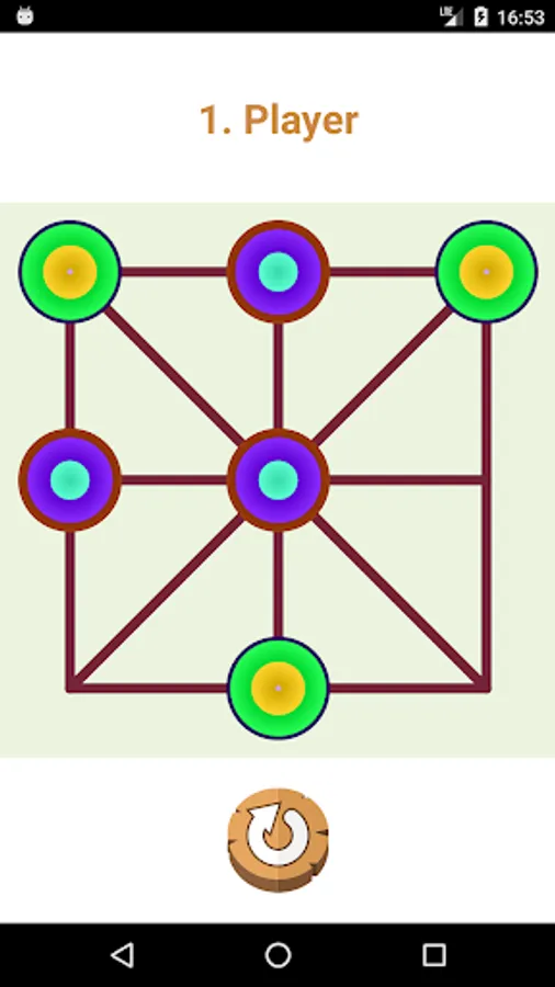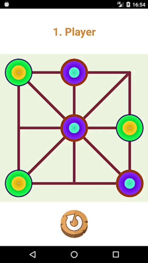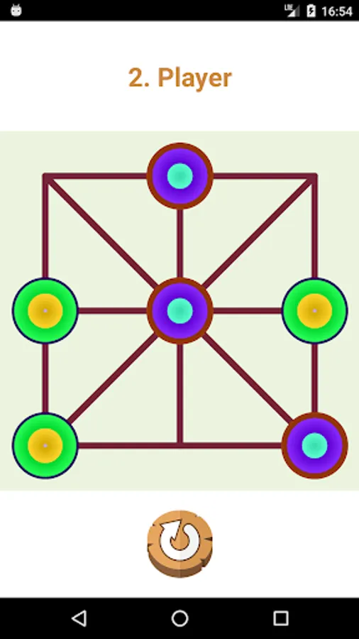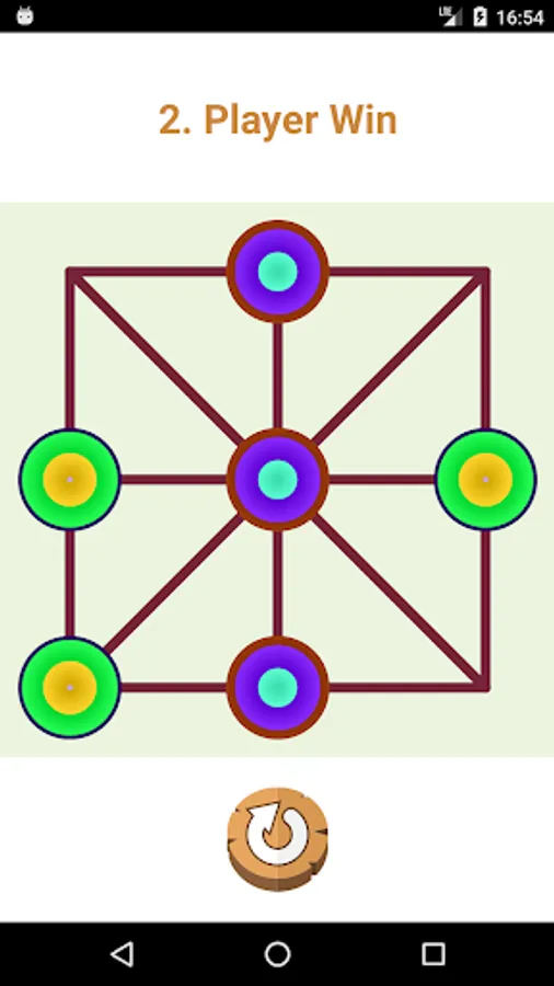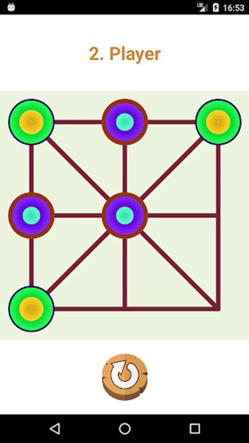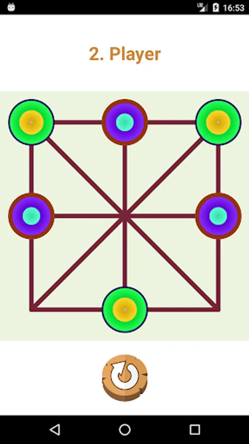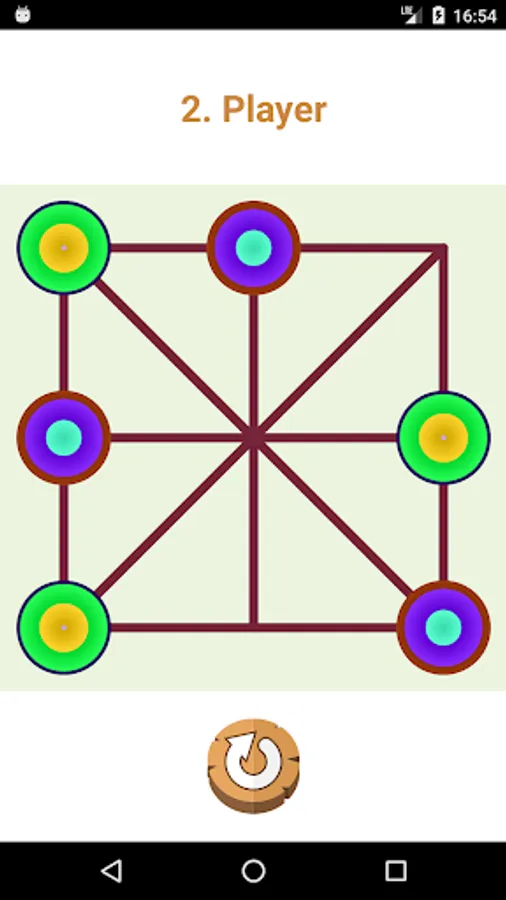 In the first three moves, the players place their pieces on a free one of 9 points, forming a triple in the same line wins, or by one of these two rules, it is played by moving one piece in turn until one of the players forms a triple in the same line. Stone to any empty place. The stone is to the nearest empty spot (from the edge to the empty midpoint, from the middle to an empty edge point, or from the edge to an adjacent blank edge).