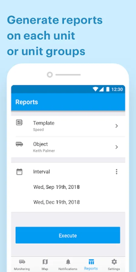 - Reports. Generate reports by selecting the unit, report template, time interval, and get analytics right where you are at the moment. PDF export is also available.