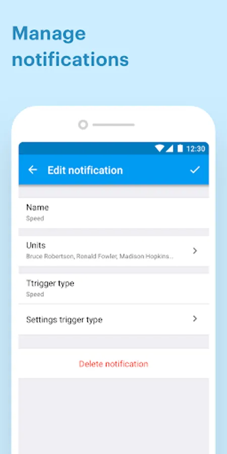 - Notifications management. Alongside with receiving and viewing notifications, create new notifications, edit the already existing ones and view the notifications history.