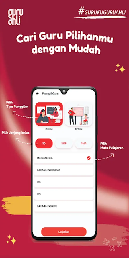 Call Guru is an offline tutoring service for teachers who come to the house, which can be ordered through the application. Starting from the time and lessons taken can be adjusted to the needs.