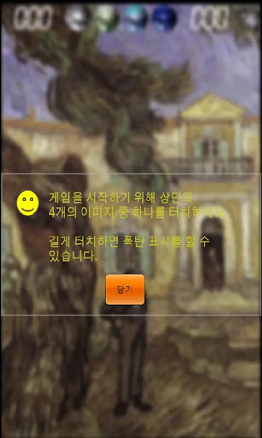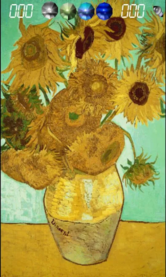 Game background, screen will use the works of Van Gogh. Before the start of the game at random to four works by Vincent van Gogh can be appreciated.