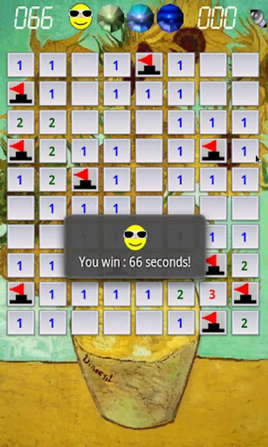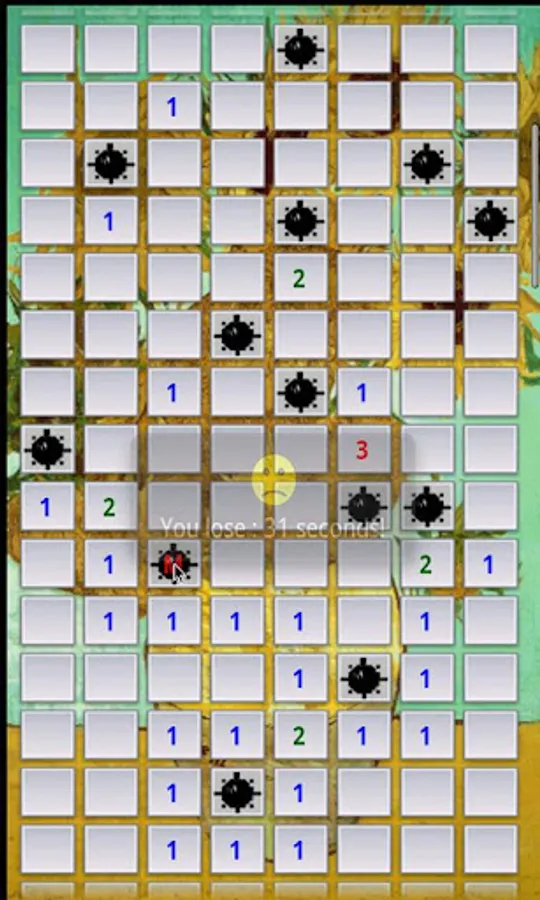 Minesweeper game based on the number that appears on the card upside down as the game is to estimate the location of mines. Pressing the mines for a long time suspected the card (when you touch) display card can change mine. If you find all the mines successfully, the game is over.