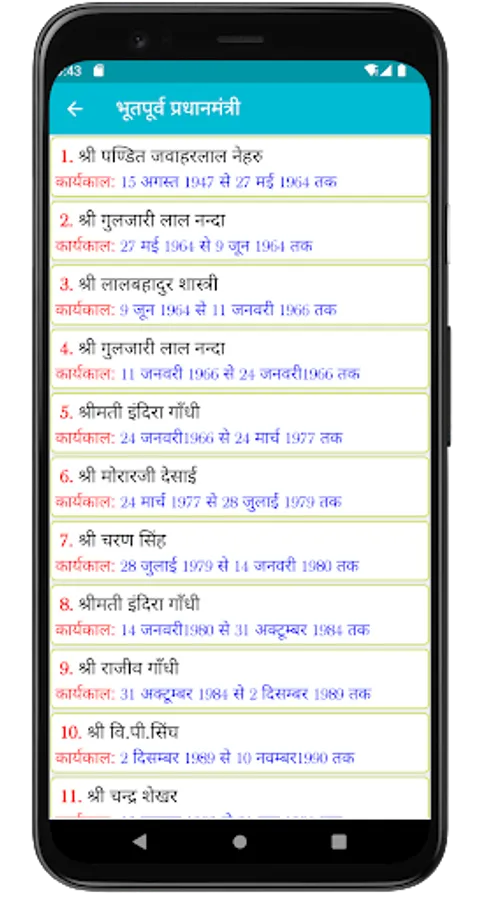 This app gives you general knowledge about current prime minister of India, former prime ministers along with their tenure. This app provides list of current chief ministers and former chief ministers of all states/union territories of India along with their tenure and general knowledge. This app learns you general knowledge about Indian ministers which can be helpful in cracking competitive exams for various government jobs.