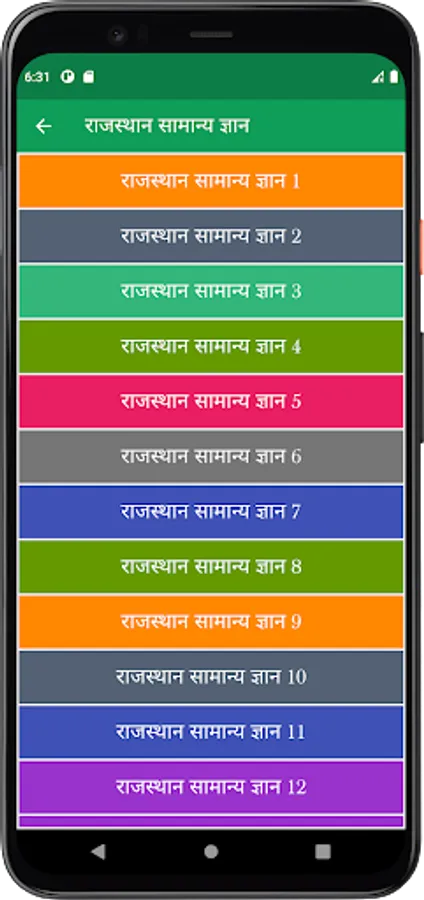 This app provides Rajasthan General Knowledge in Hindi Language. This app has more than 2500 Rajasthan general knowledge questions. This app has Rajasthan History, geography, economy, culture, Districts, Festivals, river, tourism and many others. This app will help you to prepare for competition exams like: RBI, CAT, UPSC, MPPSC, BANK PO, BANK CLERK, SSC, IAS, IPS, RAILWAY and many others. This app content available in Hindi Language. By using this app, you can get essential study material for Rajasthan general knowledge.