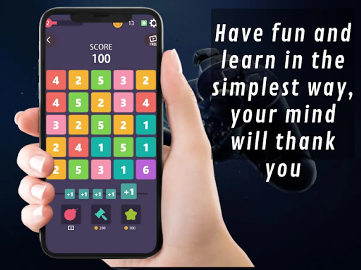 ⁃ Add or subtract the numbers you have to choose and destroy the blocks that correspond to the number.