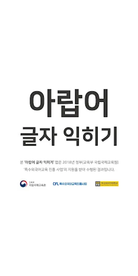 This "Arabic Language Learning" app is the result of the support provided by the government (Ministry of Education, National Institute for International Education) 'Special Foreign Language Education Promotion Project' in 2018.