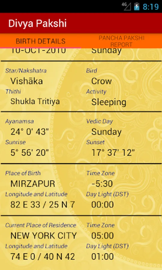 This app generates daily report with time periods which are good, medium and bad for starting any activity. The app also has information for individuals on how to use the report for trading or entering a competition or starting a business or starting any auspicious work. The report also has more information which helps true astrologers predict and suggest remedies. Individual who don't remember their birth details can also use this app, their report will be based on their name.