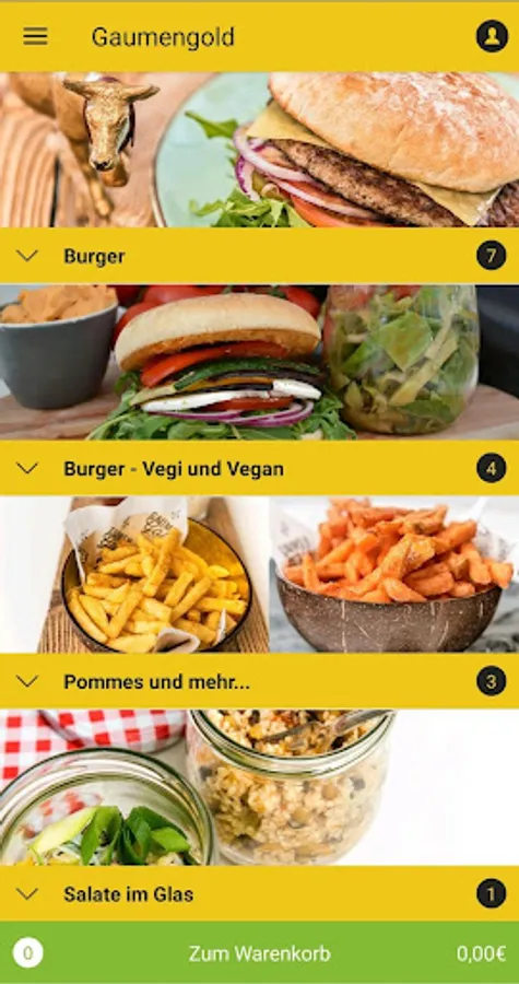 Gaumengold® are top quality burgers. There are also delicious salads, fries, sweet potato fries or even our homemade falafel balls. You are spoiled for choice between different burgers, which of course are always available as vegetarian, sometimes even vegan.