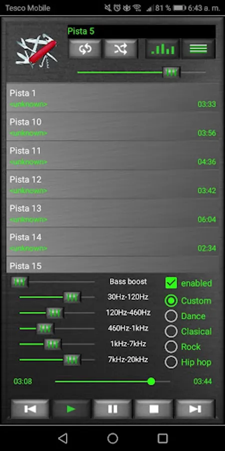 Swiss Army Knife is a tool with multiple functions that you will love. Very light compared to everything it can do for you. With 15 applications that you can discover and start using. It has a 1. Mirror, 2. A flashlight that allows both the front and rear flash, 3. Flashlight, 4. Magnifying glass, 5. Clothing size converter, 6. Size shoe converter, 7. Level, 8 Notepad, 9. Scientific calculator, 10. Random number generator, 11. Counter, 12. Measure converter, 13. Rule, 14. Conveyor and a 15. Music player, in only 15Mb of space !!!!