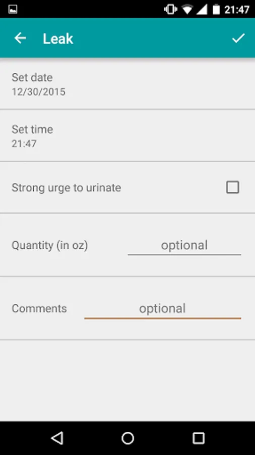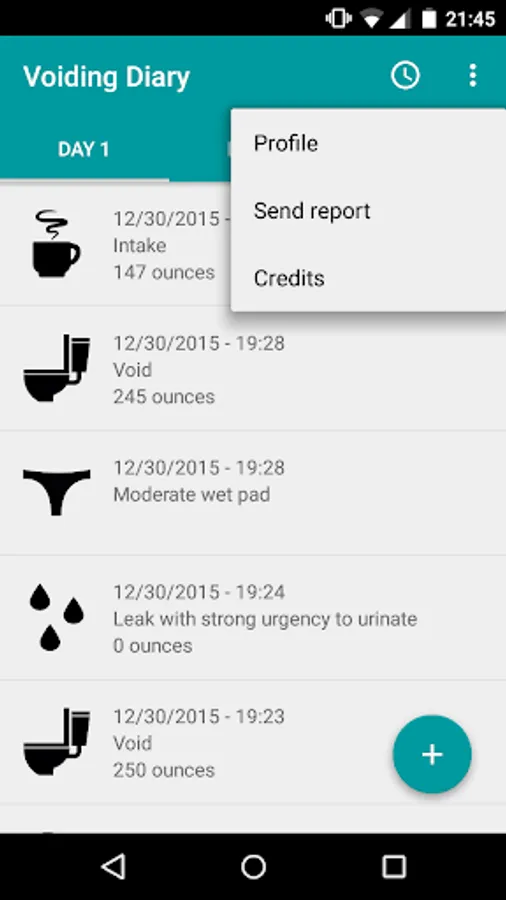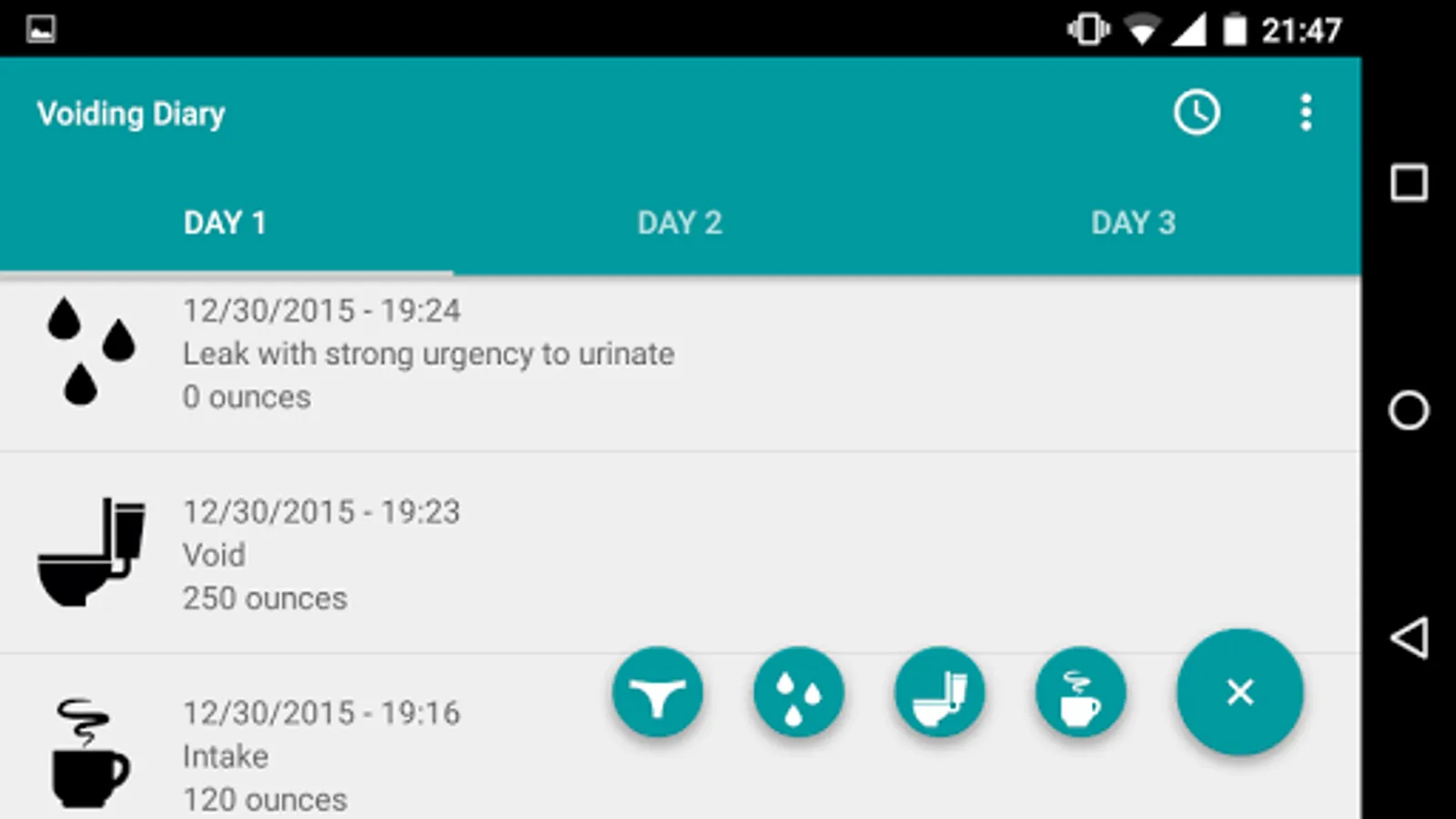 With this diary you will be able to record your daily liquid intakes, voids, leaks of urine and pad changes for three days. Having finished the records for the three days, you can send the report to your doctor via email.