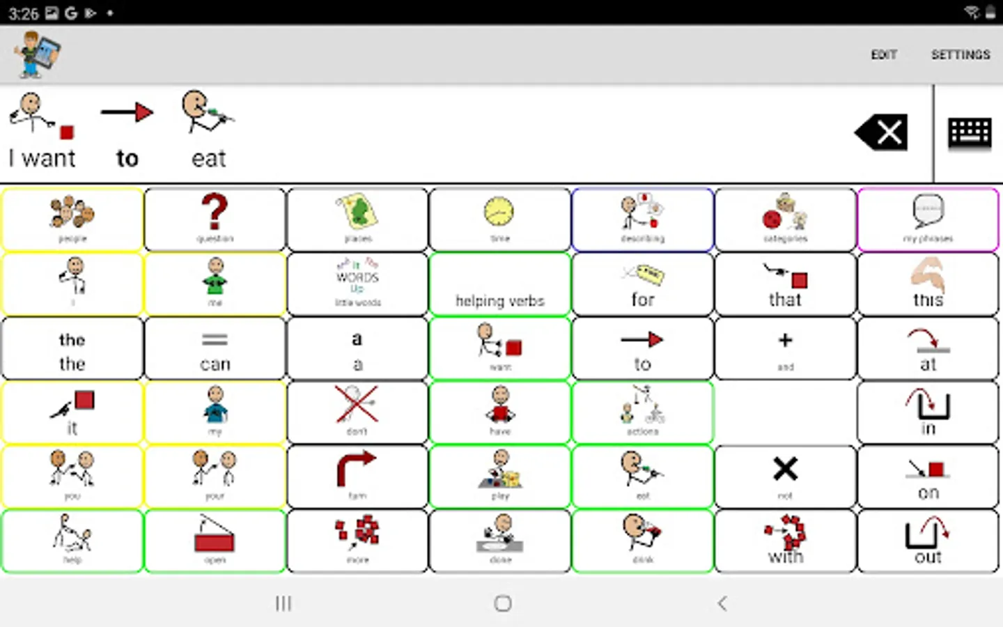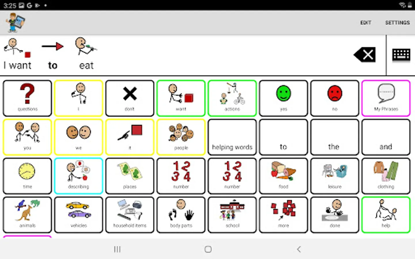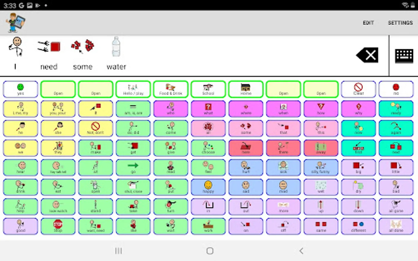 • Choose from over 30,000 SymbolStix™ symbols (worlds largest AAC library), or take photos with the camera, use photos from your album, or add Google images to your buttons