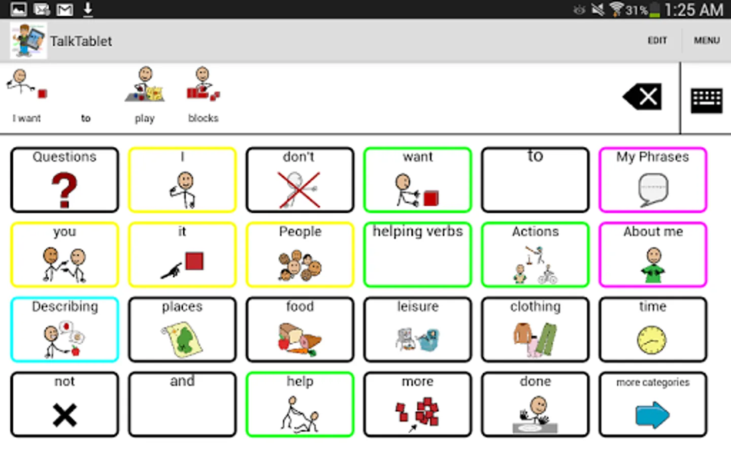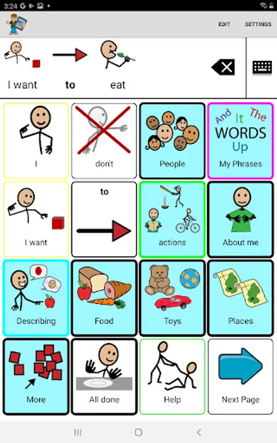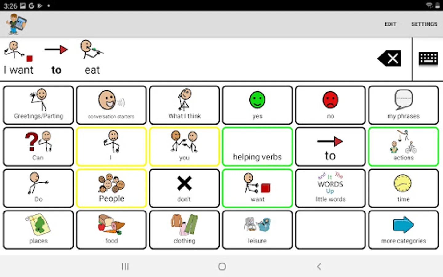 • Choose from over 30,000 SymbolStix™ symbols (worlds largest AAC library), or take photos with the camera, use photos from your album, or add Google images to your buttons