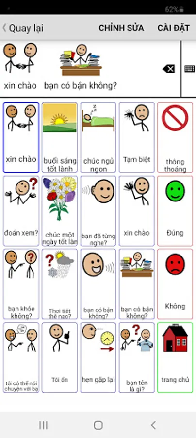 • Choose from over 30,000 SymbolStix ™ icons (the world's largest AAC library) or take a picture with the camera, use photos from your album or add Google images to your buttons