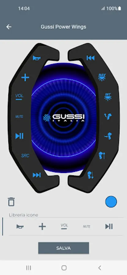 Through the Murano app it is possible to configure the layout of the controls in the 14 positions, change the image and the customer logo rather than the color of the backlighting of the POWER WINGS.