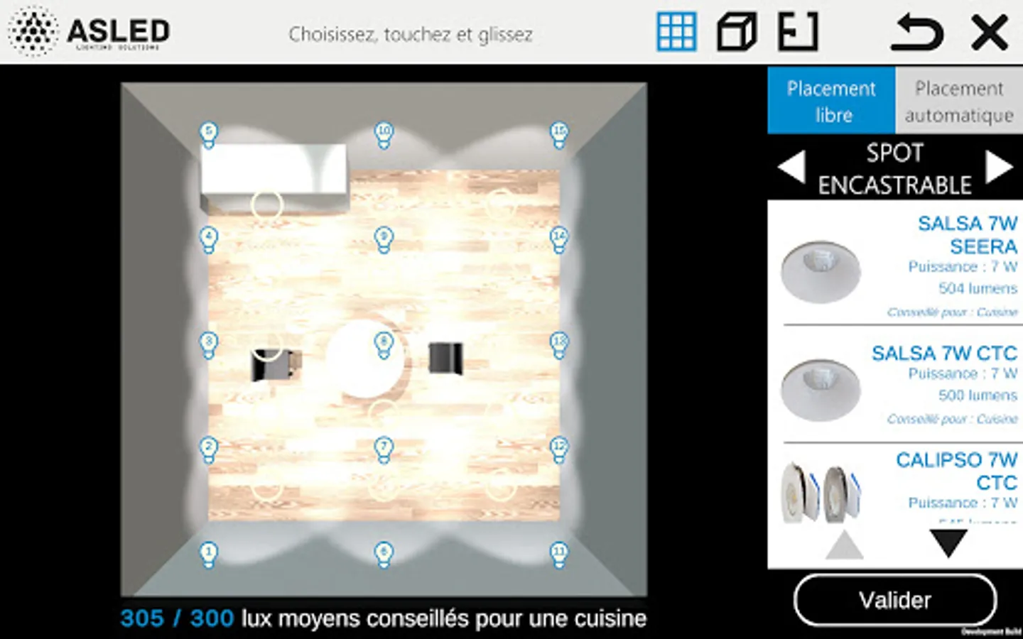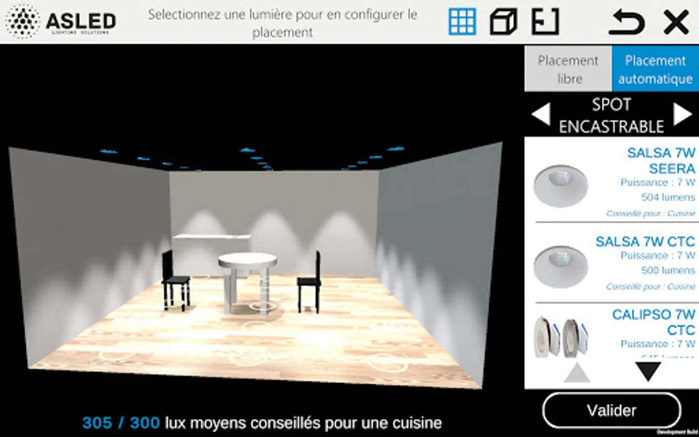 In addition, thanks to its automatic luminaire layout management tool, you have a layout plan worthy of the advice of a lighting professional. This will take into account the destination of the room and optimize your future installation.
