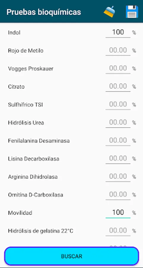 This version of the application has an extensive list of tests, in which you can enter the percentage of results in order to carry out the search.