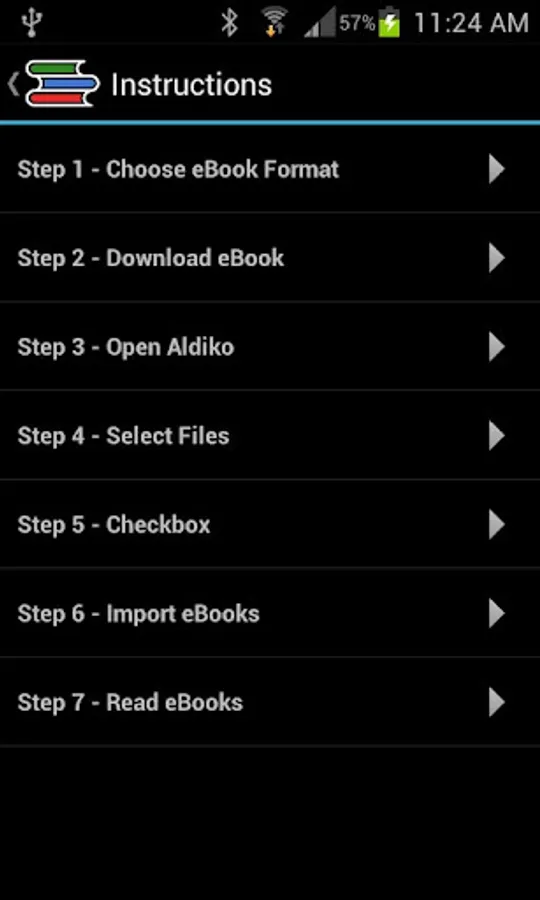 - An eBook Reader app (We recommend Aldiko Book Reader) or Google Play Books to read .epub files.