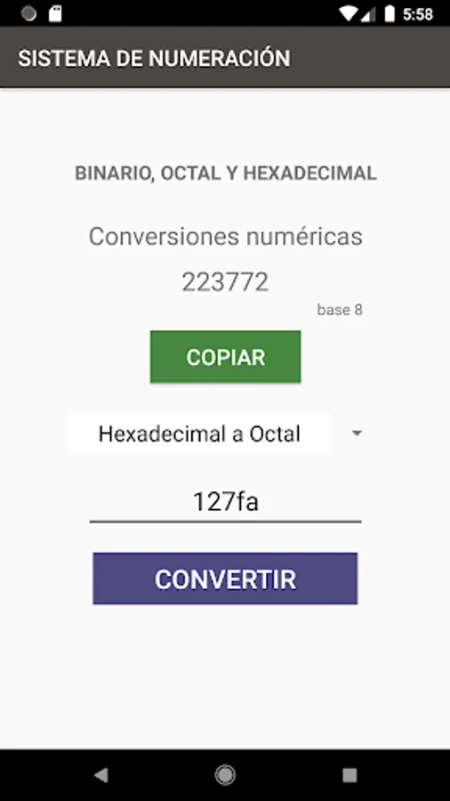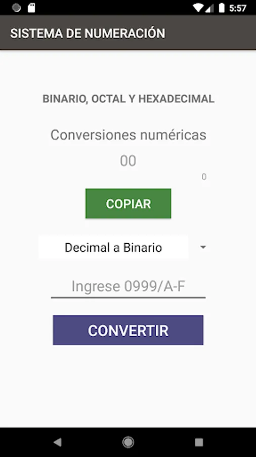 Numerical conversions and their variants; decimal, binary, octal and hexadecimal