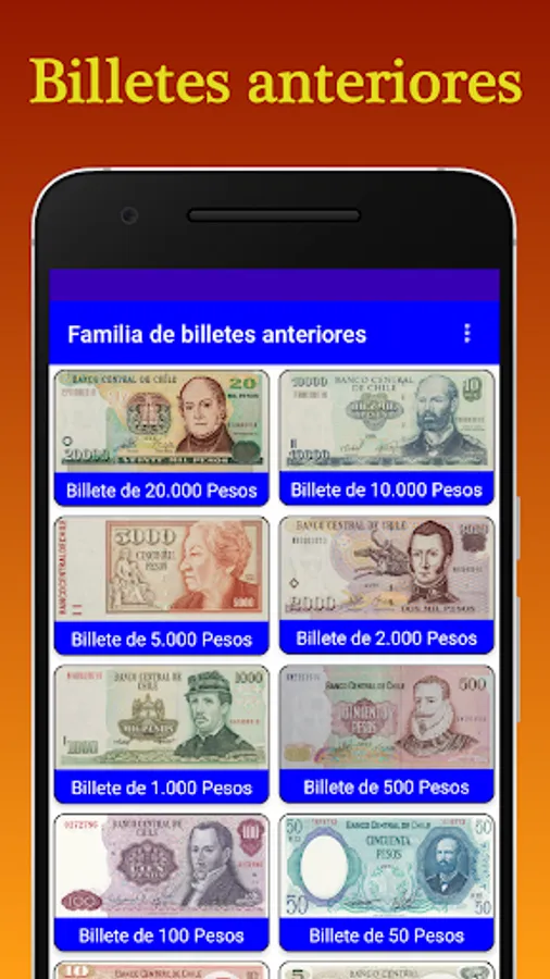 - Explore and learn the current and previous banknotes of Chile, with details of each banknote and its year of creation.