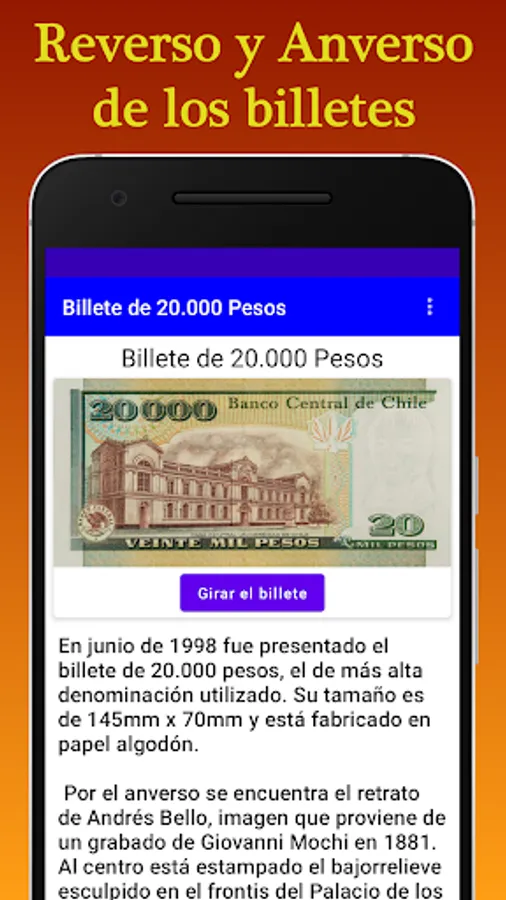 - Explore the banknotes and learn about the characteristics of the Chilean banknotes.