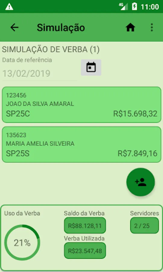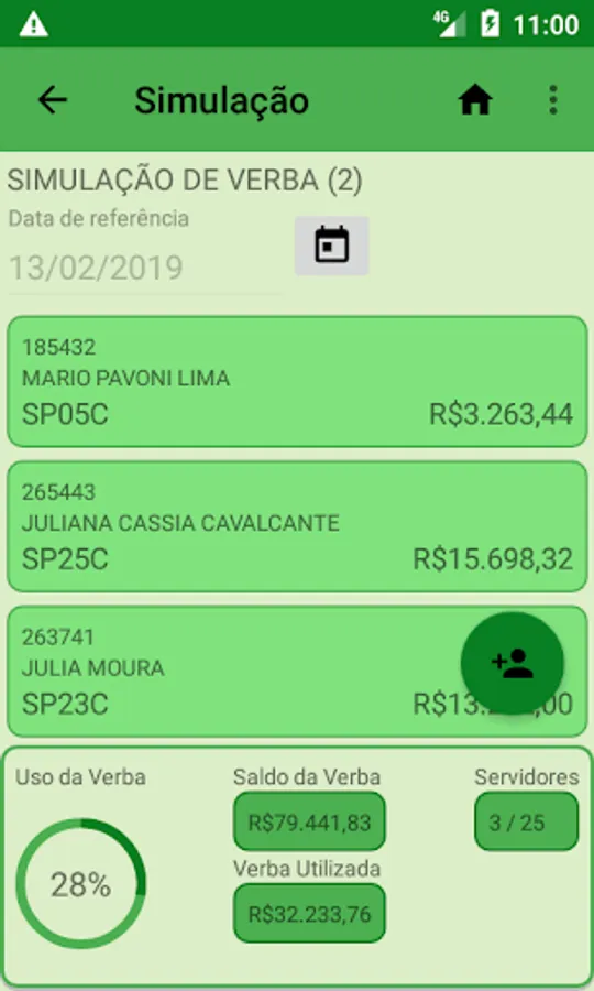 The SIM can also make simulations for future dates. In this case, the application considers both the remuneration changes of the positions over time, due to job plans and salaries, in addition to the existing restrictions on the value of the minimum wage, which changes annually.