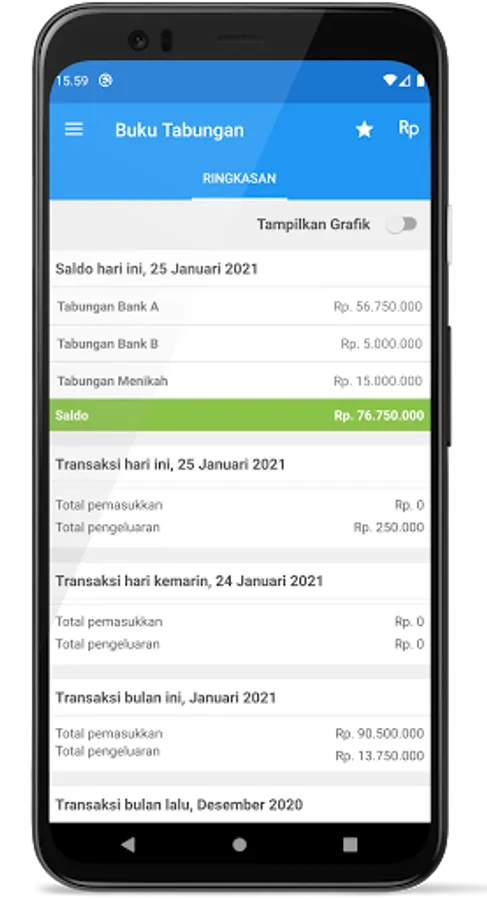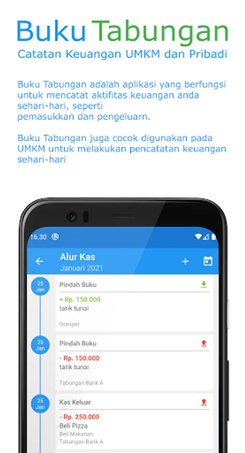 A savings book is an application that functions to record your financial activities, such as expenses and income. This application is designed with an eye-catching, easy-to-use and informative interface design for daily financial activities.