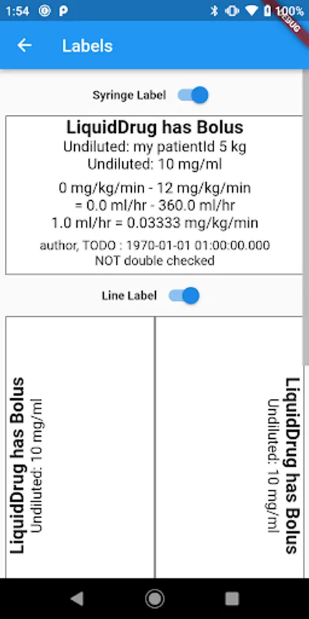 labelSyringe will provide printed labels for the syringes that are prepared where you need them. The labels improve readability and contain a lot more useful information. But it will do more than that. Based on information that is stored in a centrally maintained database it will help with complex weight based dilutions, support double check procedures by using QR codes and keeps every preparation compatible with the drug dilution protocols that are approved on your department. This is done with the users smartphone and a cheap sturdable black and white printer or a color printer.