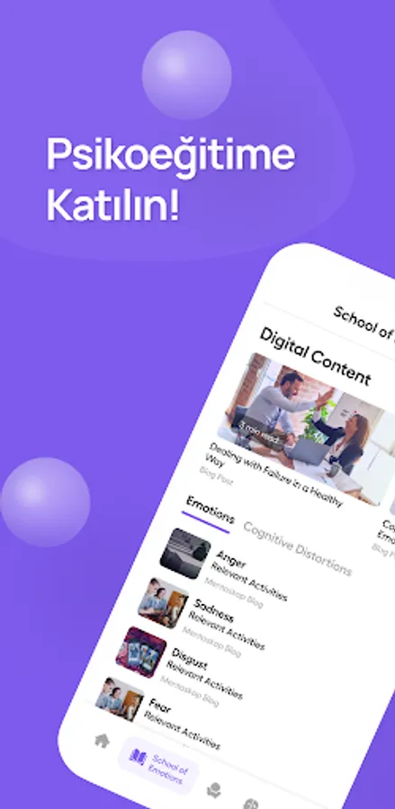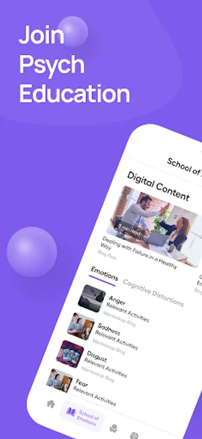Empowering Emotions: Master Your Mind Anytime: Discover tools for diagnosis and treatment with our app. Use the Emotion Chart to understand your emotions and cognition and choose Group or Individual Therapy options. Access psychoeducation from the School of Emotion for additional support.