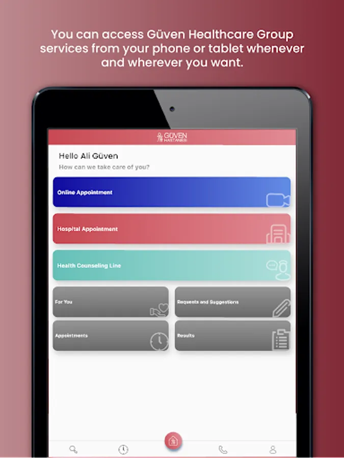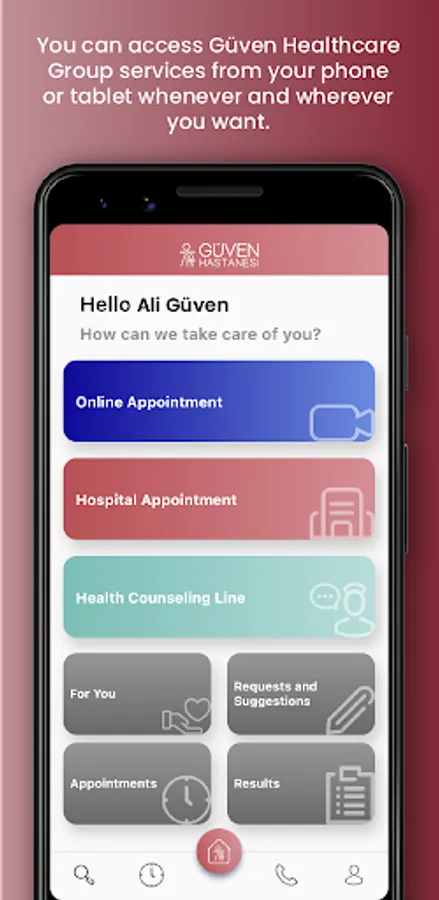Güven Mobile application is a digital healthcare platform brought to you by merging technological potential along with Güven Health Group’s half a century of experience.