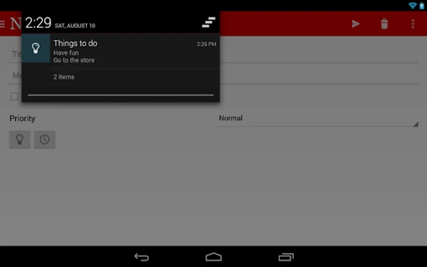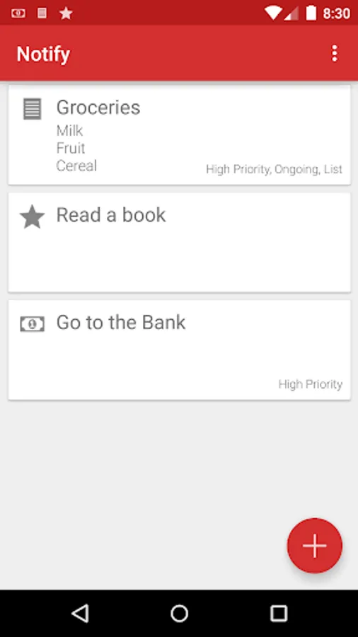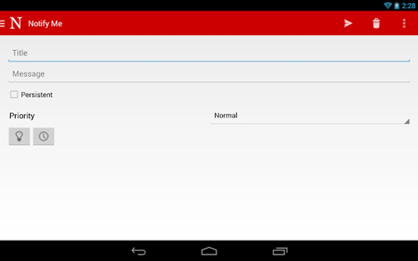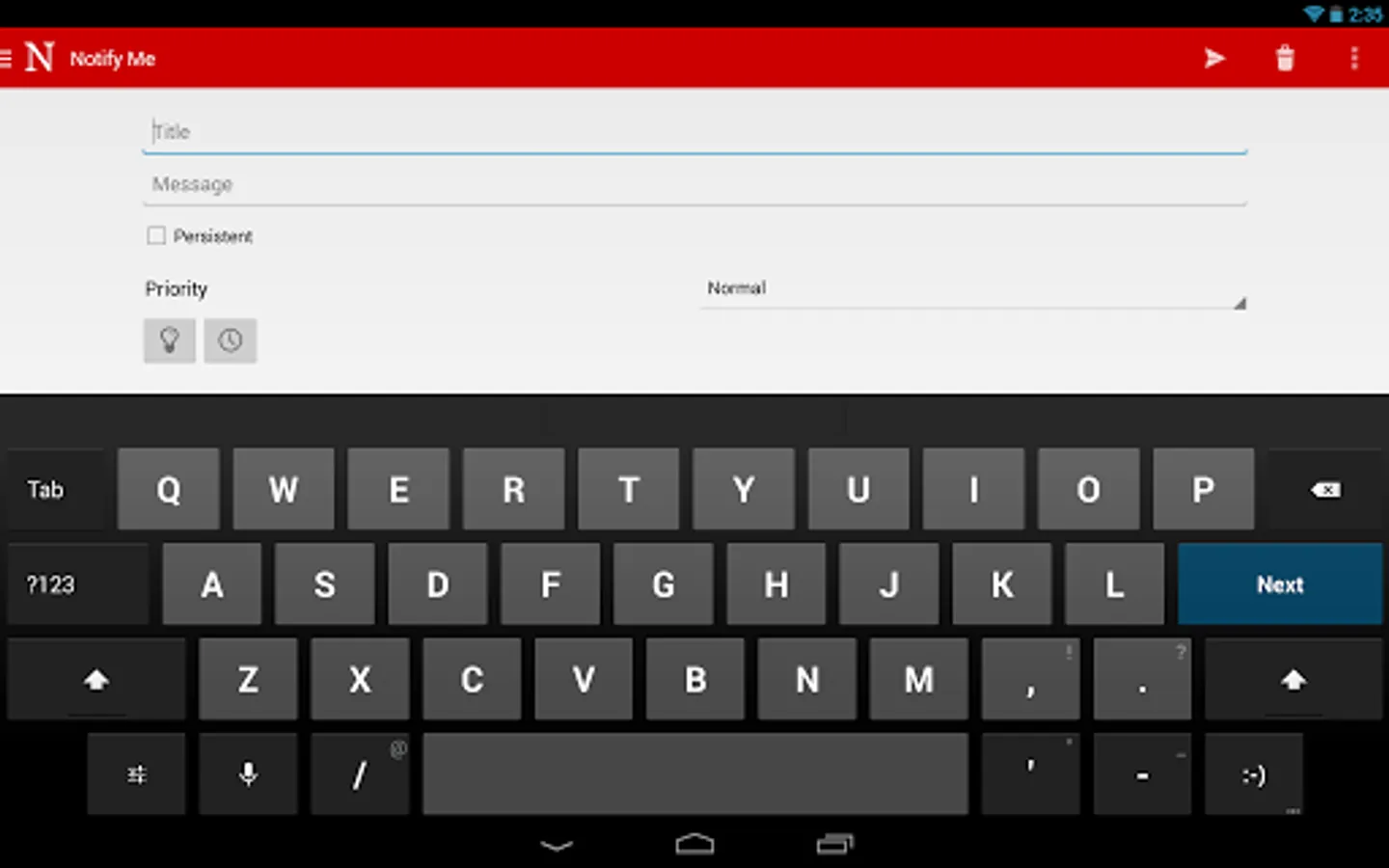 Notify is a simple notification reminder and to-do app. Enter a title and press Notify, it's as simple as that. Customize your notifications even further by selecting icons, priorities, persistent notifications, and adding messages.
