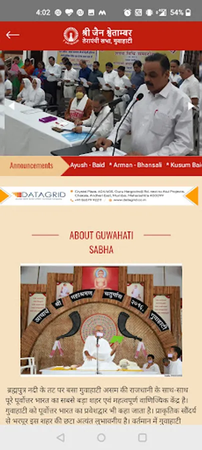 Shree Jain Shwetamber Terapanthi Sabha Guwahati has developed this app to cater to the Jain Terapanth community based out of Guwahati The key features of this app are 1. Directory of Members and Families 2. Name search 3. Business Search 4. Matrimony Search 5. About Guwahatisabha and other organizations 6. Help desk