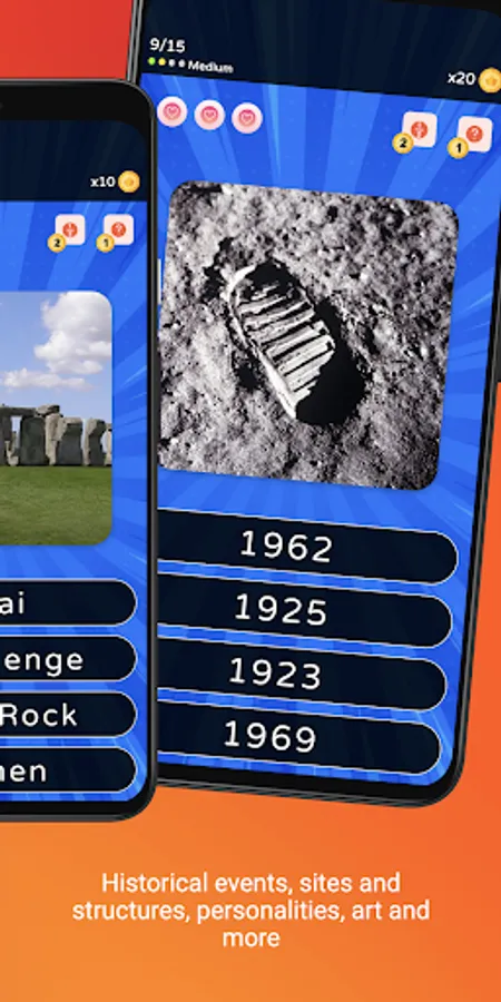 History - Trivia in pictures is a new and amazing app for lovers of trivia on subjects of historical events, historical figures, historical sites, art, and more.