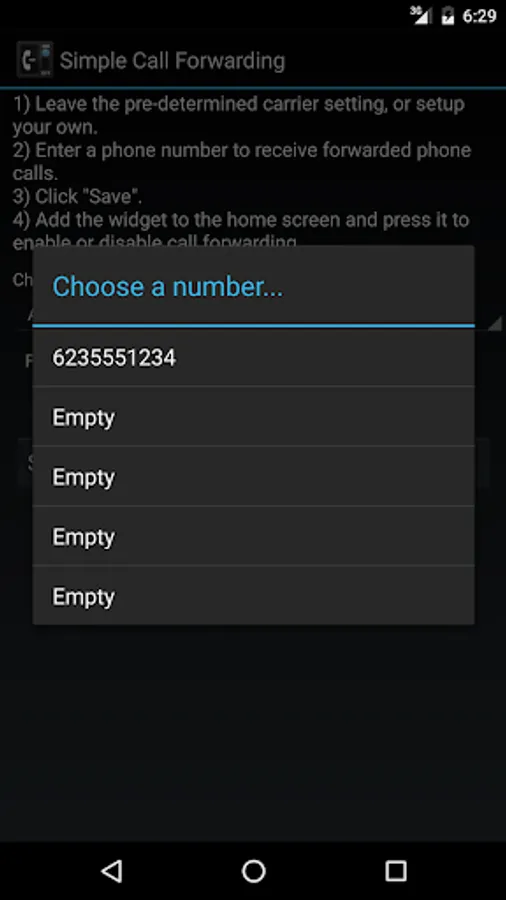 NOTE: **Samsung Phones: Please whitelist this Simple Call Forwarding Mode Widget in the Battery Power Save settings.**